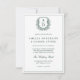Emerald Green Leafy Floral Crest Monogram Wedding Invitation