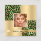 A faux gold and emerald green leopard block pattern as background. Personalise and add a photo, and text on the front.