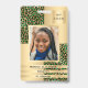 Emerald green leopard pattern and gold colour blocks. Personalise and add your business logo, profile photo, name, details.