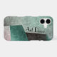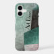 This phone case is an elegant art deco inspired abstract. The design is unique and sophisticated with an industrial feel in shades of emerald green, mauve and black in blocks of colors. Personalize with your name.