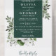 Emerald Green Modern Botanical Floral Wedding All In One Invitation