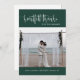 This elegant thank you flat card features an elegant calligraphy and simple sans serif typography font with a photo on an emerald green background for a clean minimalist and modern look, which is a beautiful way to send a simple thank you to your guests. The simplicity of this design adds a touch of elegance to your wedding thank you cards. It works well with many wedding themes and definitely a great addition to your wedding stationery. Just customise the names and wording in a few easy steps and personalise the thank you flat card with your photo of the happy couple to give your card a nice personal touch.