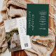 This invitation features modern typography giving a clean and simple block serif typography with an emerald green background. The simplicity and clean design of this invitation works well with all wedding themes and definitely a great addition to your wedding.