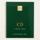 Emerald green background and white and golden text. Personalise and add your logo, monogram initials, name and a title year (or any year). Your logo both on the front and the back. Space for your website address on the back.