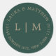 Emerald Green Monogram Wedding Classic Round Sticker