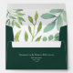 Elegant emerald green wedding envelope featuring a refined gold monogram on the back flap and watercolor greenery inside. Personalised with the couple’s return address for a cohesive and sophisticated wedding stationery look.