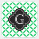 A stylish, chic, modern variation on the Moroccan Lattice / Quatrefoil pattern in emerald green and white with a black monogram label.