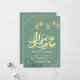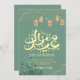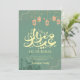 Featuring a beautiful hand-painted emerald mosque and a festive garland of colorful lanterns, this card captures the cozy spirit of the Eid evening celebrations.