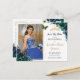 Emerald Green Navy Floral Quinceañera Photograph Announcement Postcard