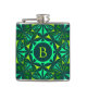 Emerald Green Ornate Kaleidoscope Monogram Hip Flask