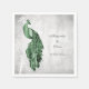 Personalise a unique napkin for your wedding reception or bridal shower guests with a set of Emerald Green Peacock Bridal Shower Napkins. Napkin design features an elegant peacock against delicate foliage and grunge background. Personalise with the groom and bride's names along with the wedding date. Additional wedding stationery available with this design as well.
