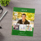 Create your own unique photo collage. Use four, 4 of your favourite photo. Personalise and a year, name and text. An emerald green background, white text.