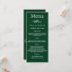Birthday party menu card. Personalise and add a name, age, date and the menu. A emerald green background. White coloured letters.