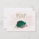 Beautiful romantic wedding response card featuring emerald green and pink flowers and some leaves .