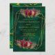 I hope you'll enjoy this emerald-green watercolor background texture with three shades of pink peony roses gold geometric frame. Matching invitations and wedding party supplies are available in this collection suite.