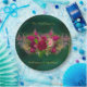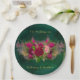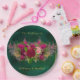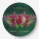 Emerald Green Pink Peony Roses Wedding Paper Plate