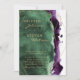 Stunning emerald green and plum purple watercolor invitation with accents of gold glitter and a gold geometric frame. This elegant wedding invite with hand written script calligraphy will be sure to wow your guests!