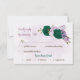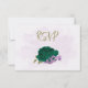 Beautiful romantic wedding response card featuring emerald green and purple flowers and some leaves .