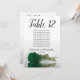 These beautiful table number cards will make it easy for your guests to find their seats at your wedding reception. They feature a simple yet elegant design with script calligraphy lettering and a single long-stemmed emerald green coloured rose lying on its side reflecting in water. The card includes a seating chart with 10 names. There is also space for the couple's names and wedding date. This card is available in a variety of sizes and is larger than our standard table number cards.