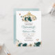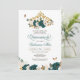 Quinceanera invitation in deep emerald or evergreen green featuring butterflies and a beautiful floral tiara . Visit shop for more variations including options with dolls in gowns in many skin tone and colour combinations