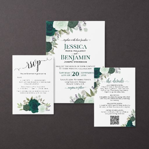 Emerald Green Watercolor Roses Boho Wedding SuiteDesigned by Cat Ritchie