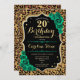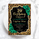 Emerald Green Roses Leopard Print 20th Birthday Invitation