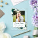These beautiful acrylic cards are a special and unique way to let your friends and family know to save the date for your upcoming wedding. The rustic boho chic design features your photo surrounded by hand painted watercolor roses in shades of emerald, mint, and sage green, along with sprigs of eucalyptus and garden greenery. There is room below for your names, the wedding date and location. Stunningly beautiful way to begin your wedding journey.