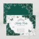 Emerald Green Silver Floral Quinceanera Reply RSVP Card