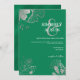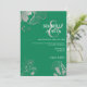 Emerald Green unique hand drawn silver textured flowers and leaves wedding invitations. Easily personalise with your own details.
