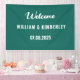 Modern, elegant, emerald green Wedding banner. Perfect for newly weds. You can personalise it with bride and groom's names and date.