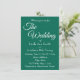 Simple style, wedding invitation that features a trendy, emerald green colour background along with the future bride and groom names and event date, time, location, and registry printed in white, stylised script. Personalise your wedding invitation by replacing info with your own. Select your invitation paper style and quantity. Designed to coordinate with our Emerald Green Simple Style Wedding collection.