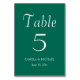 Guide your wedding reception guests to their table with this simple style table number card that features white, stylised lettering on a trendy, emerald green colour background. Design is on each side of card. Edit your card to change table number, wedding couple's names and date. Order cards separately for each table number.
