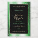 The design features a bright shimmering emerald green glitter frame with tiny sparkling stars on a plain black background.