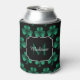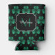 Emerald Green Sparkle Shamrock black Monogram Can Cooler