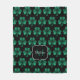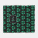Emerald Green Sparkle Shamrock black Monogram Fleece Blanket