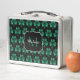 Emerald Green Sparkle Shamrock black Monogram Metal Lunch Box