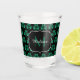 Emerald Green Sparkles Shamrock black Monogram Shot Glass
