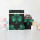 Emerald Green Sparkles Shamrock pattern black Wrapping Paper