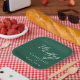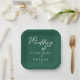 This solid emerald green square wedding plate features classic white script for a couple getting married in a forest or other nature venue. Celebrate your love with this tranquil colour and coordinate this decor with our matching minimalist typography collection.