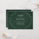 Gorgeous dramatic laurels frame this elegant wedding invitation with a deep emerald green watercolor wash background.