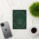 Gold foil and gorgeous dramatic laurels elevate this elegant wedding invitation with a deep emerald green watercolor wash background.