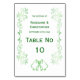 Emerald Green Wedding Table Tent Sign Bells Table Number