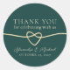 Elegant, minimal, modern emerald green wedding thank you sticker, with gold rope heart and simple script.