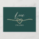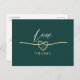 A modern and elegant emerald green thank you postcard featuring a gold rope heart and graceful script that reads Love & Thanks. A perfect way to express heartfelt gratitude to guests while matching your emerald green wedding suite. Professionally printed on both sides for a refined, stylish finish.