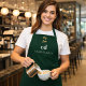 Emerald green white monogram name business logo apron