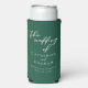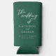 Emerald Green White Script Personalised Wedding Seltzer Can Cooler