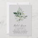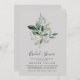 This emerald greenery grey bridal shower invitation is perfect for a boho wedding shower. The elegant yet rustic design features moody dark green watercolor leaves and eucalyptus with a modern bohemian woodland feel.