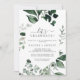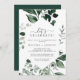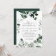 This emerald greenery let's celebrate invitation is perfect for a boho engagement party, wedding after party, retirement, graduation or any happy event. The elegant yet rustic design features moody dark green watercolor leaves and eucalyptus with a modern bohemian woodland feel.