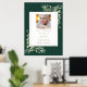 An elegant personalised celebration of life, funeral memorial service sign featuring watercolor botanical greenery foliage on an emerald green background. Designed by Thisisnotme©