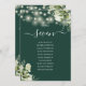 These elegant emerald green greenery floral string lights wedding table numbers can be personalised with your guests' seating plan set in chic typography. The cards are printed on the front and back (double-sided). Designed by Thisisnotme©